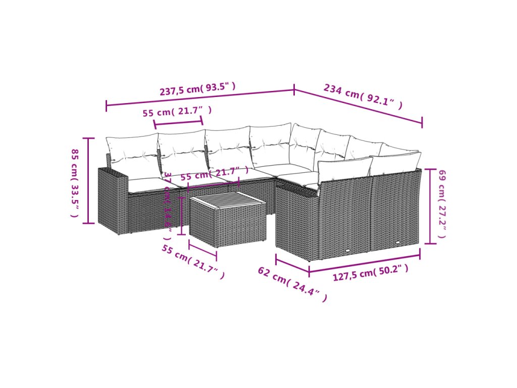 Tato zahradní sedací souprava je dokonalým doplňkem vaší zahrady, terasy nebo dvorku a poskytne vám pohodlné a příjemné místo, kde si můžete povídat s rodinou a přáteli nebo jen tak odpočívat a užívat si pobyt venku.