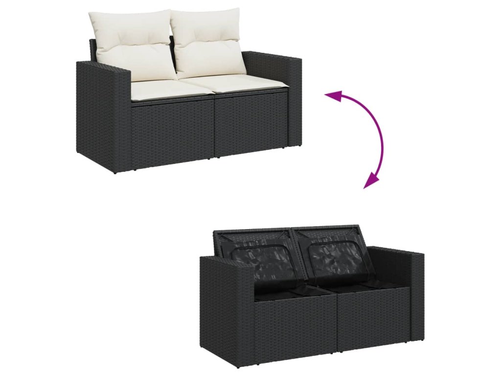 9dílná zahradní sedací souprava s poduškami černá polyratan 3256378