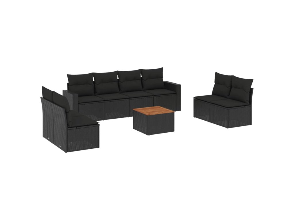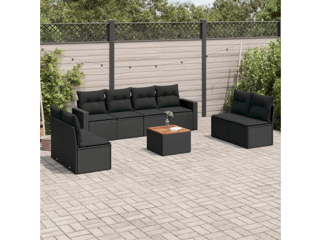 9dílná zahradní sedací souprava s poduškami černá polyratan 3256412