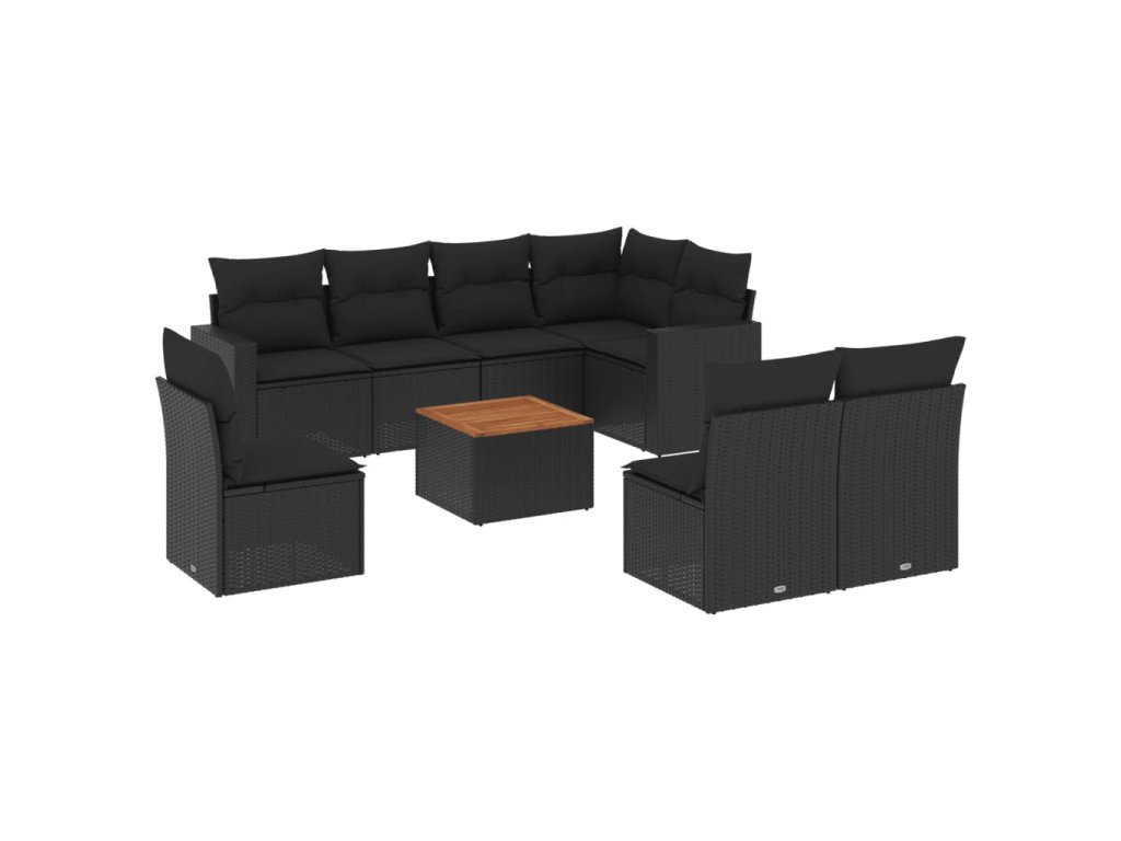 9dílná zahradní sedací souprava s poduškami černá polyratan 3256489