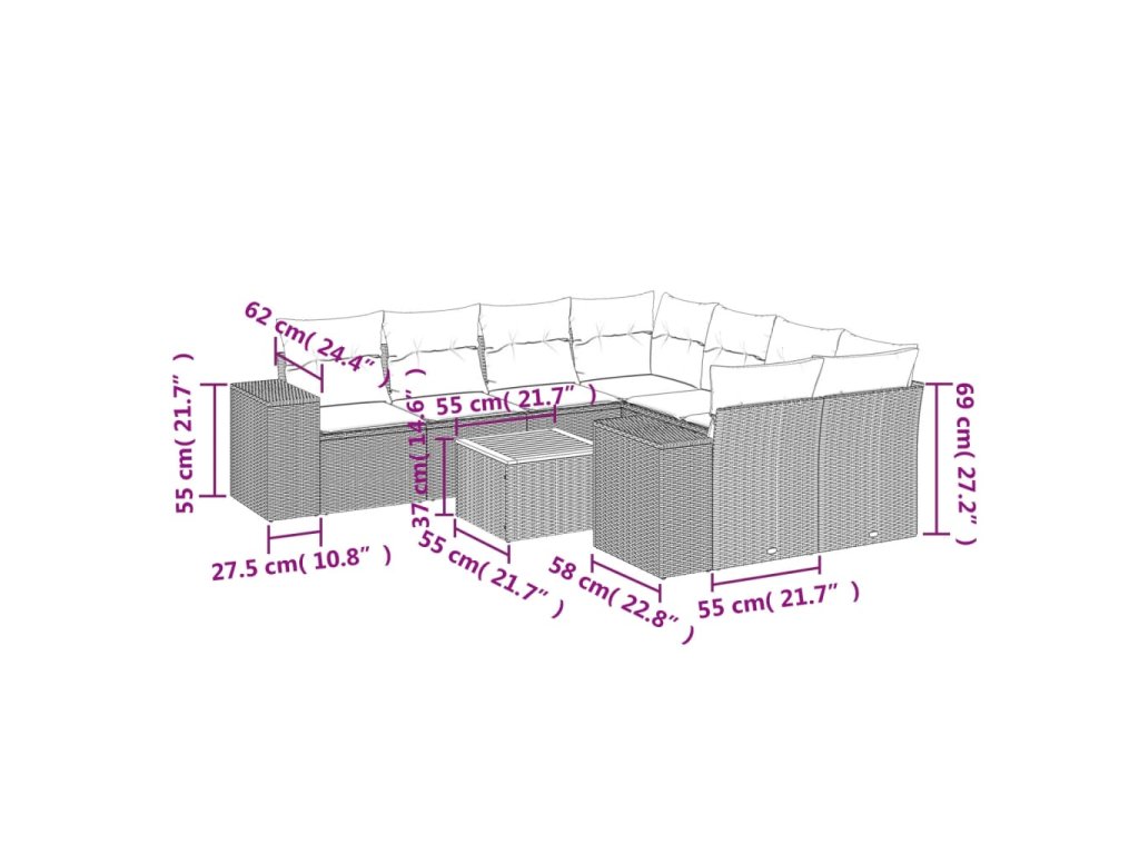 Tato zahradní sedací souprava je dokonalým doplňkem vaší zahrady, terasy nebo dvorku a poskytne vám pohodlné a příjemné místo, kde si můžete povídat s rodinou a přáteli nebo jen tak odpočívat a užívat si pobyt venku.