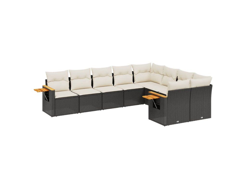 9dílná zahradní sedací souprava s poduškami černá polyratan 3259543