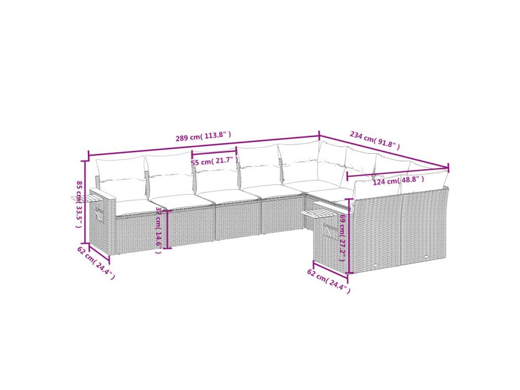 Tato zahradní sedací souprava je dokonalým doplňkem vaší zahrady, terasy nebo dvorku a poskytne vám pohodlné a příjemné místo, kde si můžete povídat s rodinou a přáteli nebo jen tak odpočívat a užívat si pobyt venku.