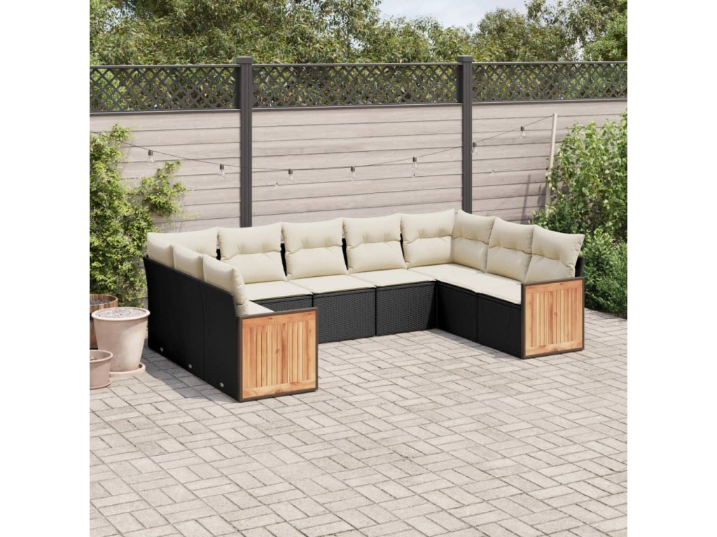 9dílná zahradní sedací souprava s poduškami černá polyratan 3260355