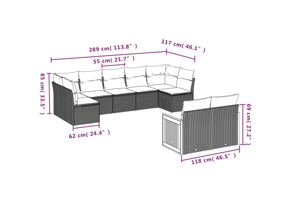 9dílná zahradní sedací souprava s poduškami černá polyratan 3260369