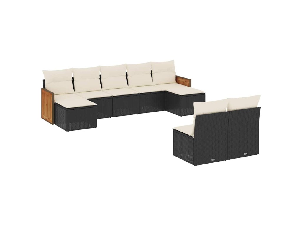 9dílná zahradní sedací souprava s poduškami černá polyratan 3260453