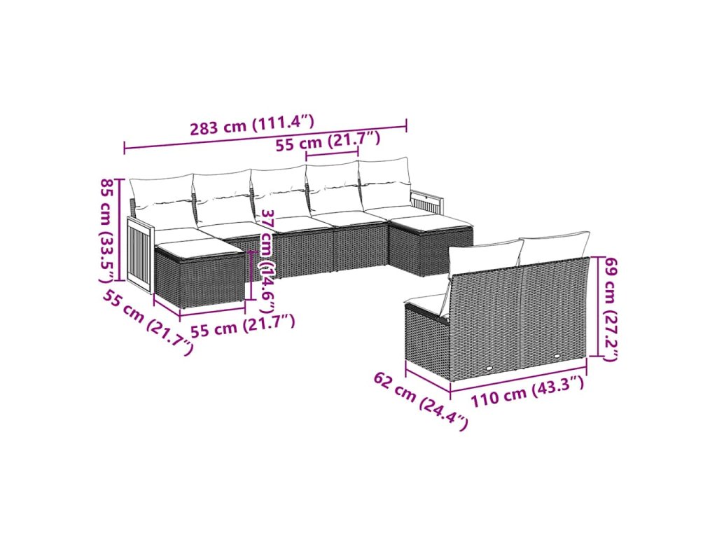 Tato zahradní sedací souprava je dokonalým doplňkem vaší zahrady, terasy nebo dvorku a poskytne vám pohodlné a příjemné místo, kde si můžete povídat s rodinou a přáteli nebo jen tak odpočívat a užívat si pobyt venku.