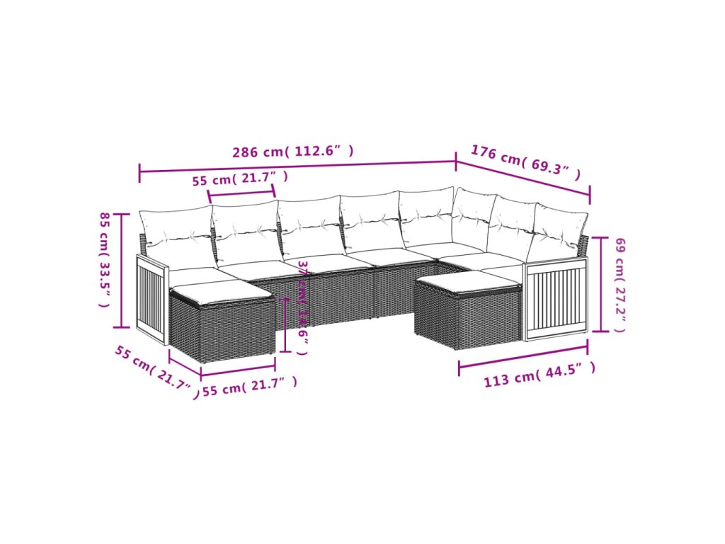 9dílná zahradní sedací souprava s poduškami černá polyratan 3260620