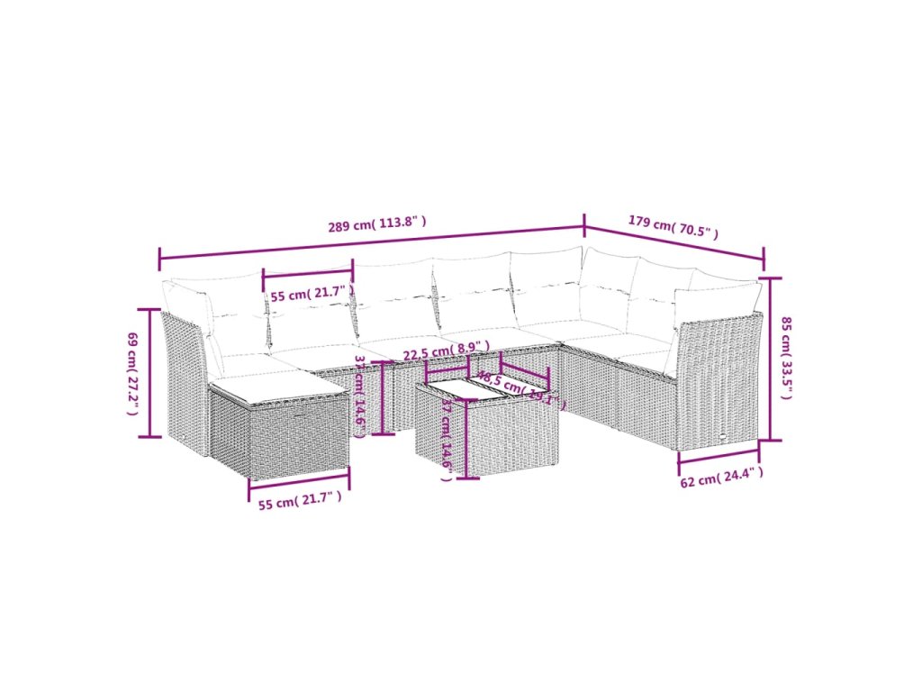 Tato zahradní sedací souprava je dokonalým doplňkem vaší zahrady, terasy nebo dvorku a poskytne vám pohodlné a příjemné místo, kde si můžete povídat s rodinou a přáteli nebo jen tak odpočívat a užívat si pobyt venku.