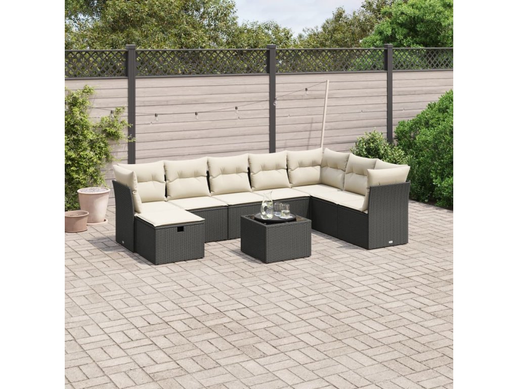 9dílná zahradní sedací souprava s poduškami černá polyratan 3263282