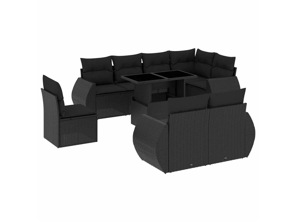 9dílná zahradní sedací souprava s poduškami černá polyratan 3268665
