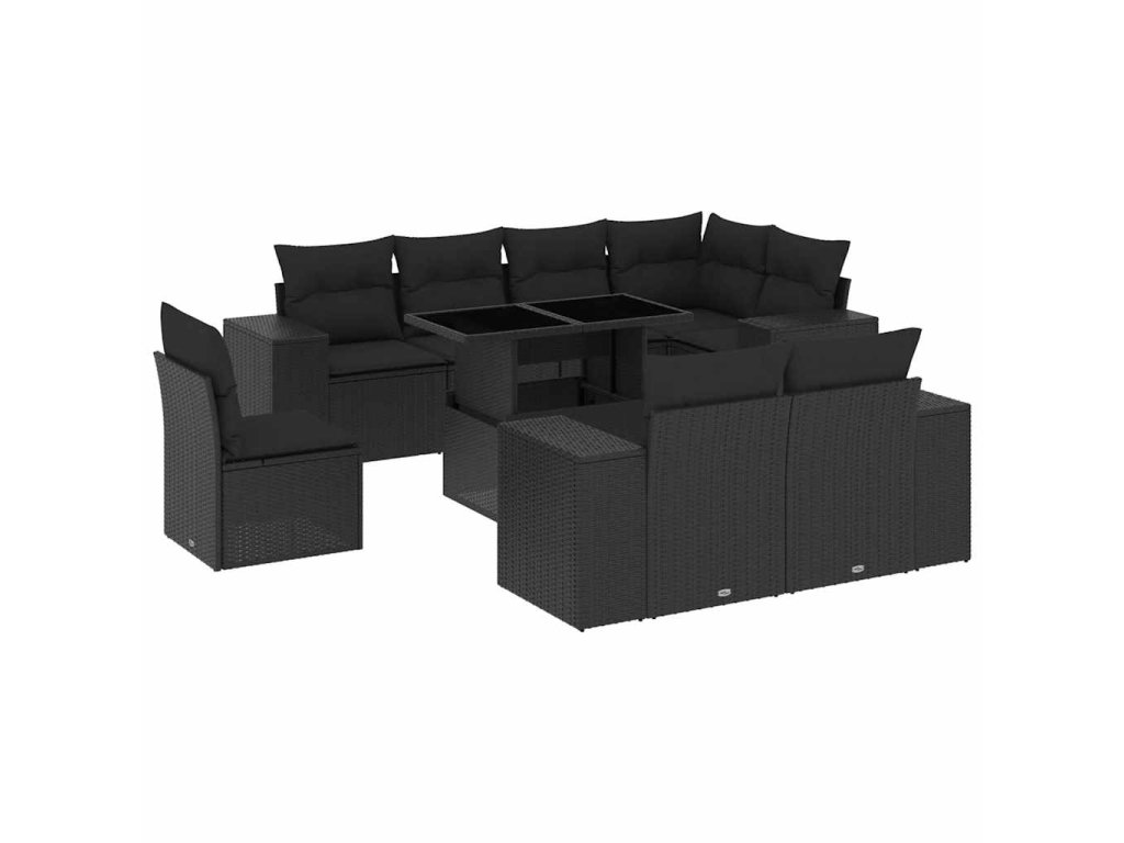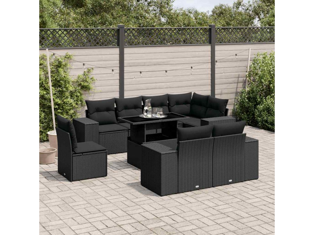 9dílná zahradní sedací souprava s poduškami černá polyratan 3269295
