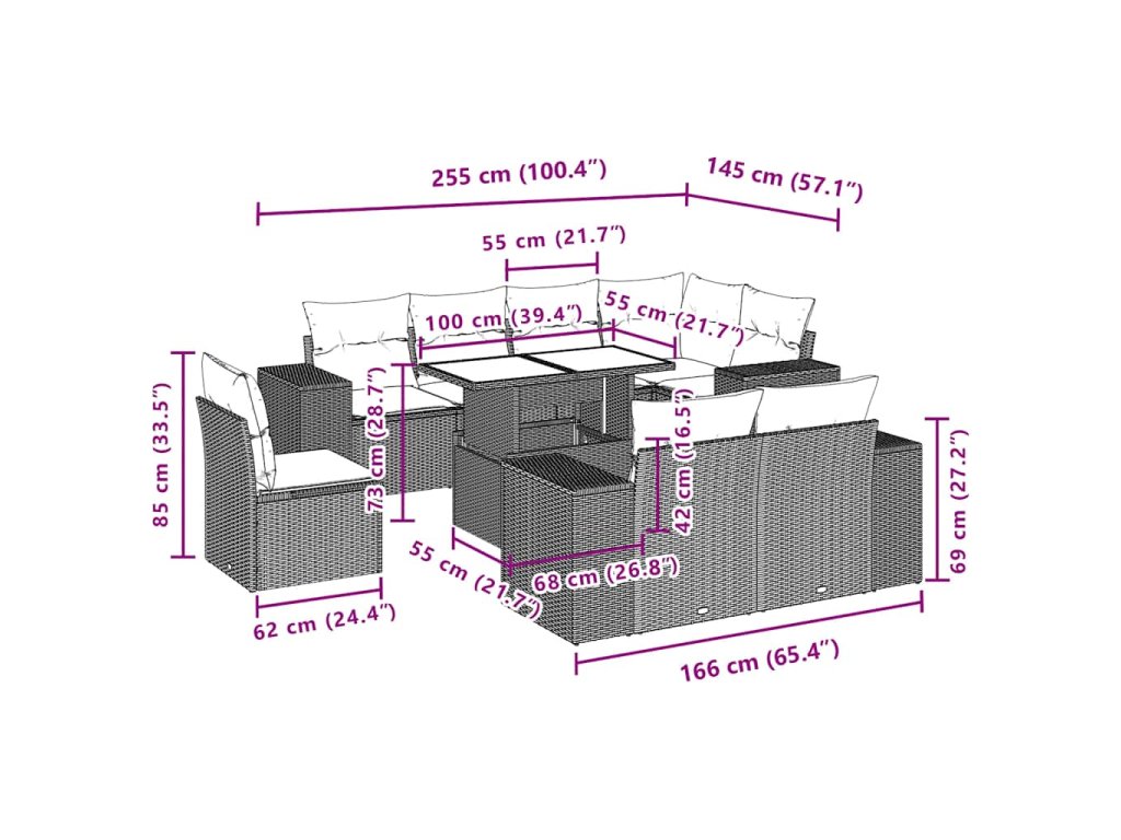 Tato zahradní sedací souprava je dokonalým doplňkem vaší zahrady, terasy nebo dvorku a poskytne vám pohodlné a příjemné místo, kde si můžete povídat s rodinou a přáteli nebo jen tak odpočívat a užívat si pobyt venku.