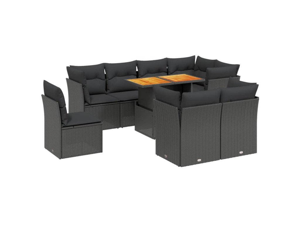 9dílná zahradní sedací souprava s poduškami černá polyratan 3270929