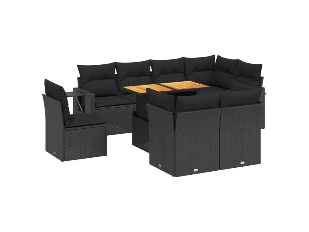 9dílná zahradní sedací souprava s poduškami černá polyratan 3271846