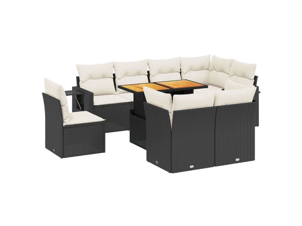 9dílná zahradní sedací souprava s poduškami černá polyratan 3271847