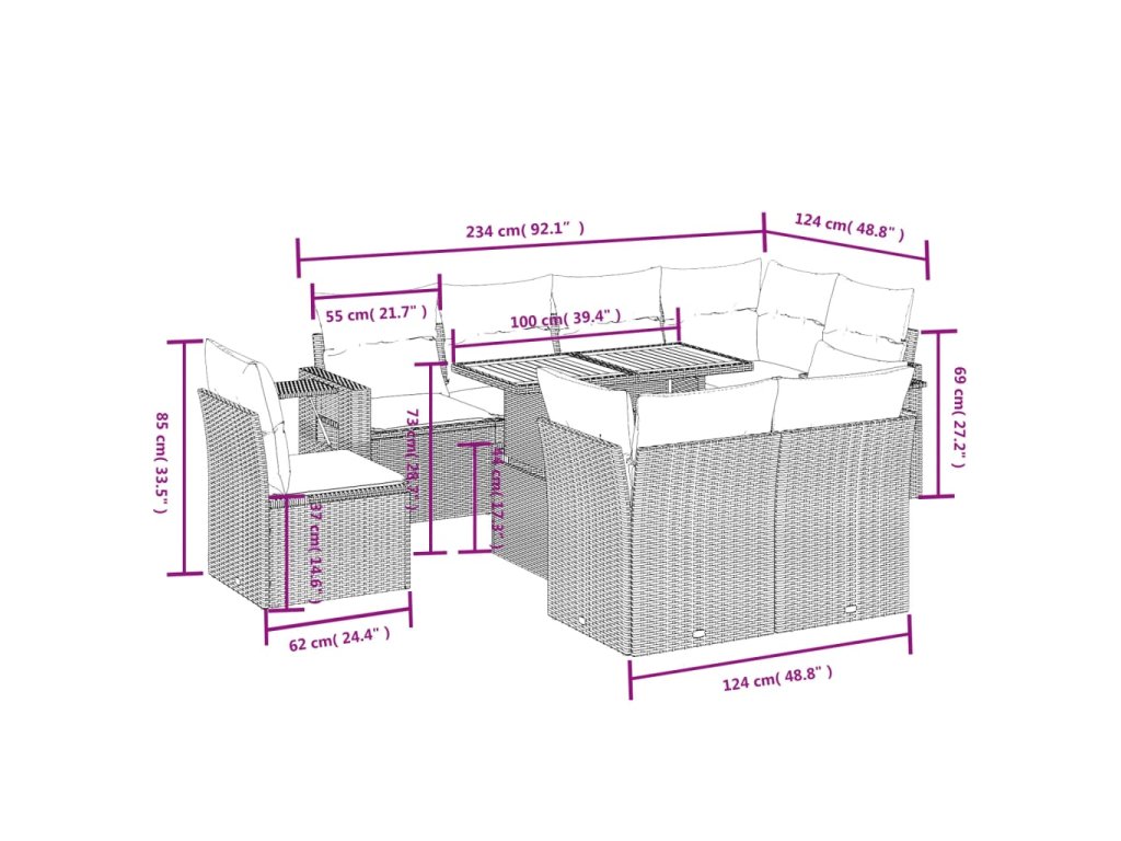 Tato zahradní sedací souprava je dokonalým doplňkem vaší zahrady, terasy nebo dvorku a poskytne vám pohodlné a příjemné místo, kde si můžete povídat s rodinou a přáteli nebo jen tak odpočívat a užívat si pobyt venku.