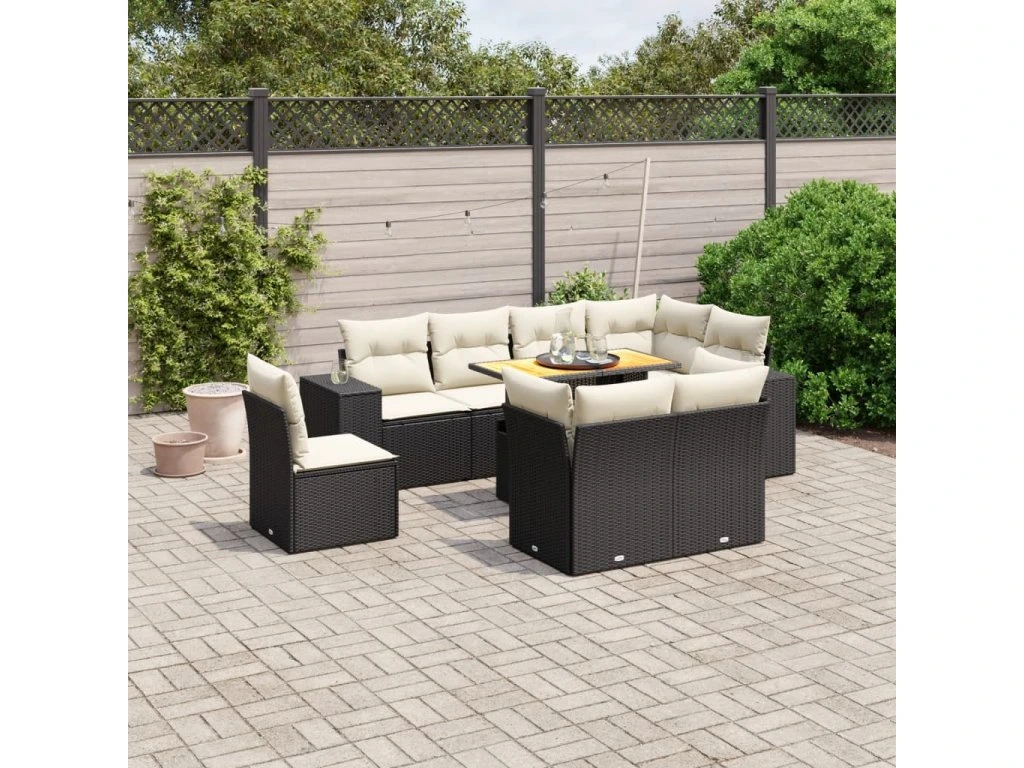 9dílná zahradní sedací souprava s poduškami černá polyratan 3272729