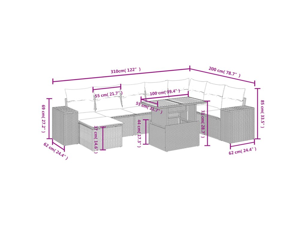 Tato zahradní sedací souprava je dokonalým doplňkem vaší zahrady, terasy nebo dvorku a poskytne vám pohodlné a příjemné místo, kde si můžete povídat s rodinou a přáteli nebo jen tak odpočívat a užívat si pobyt venku.