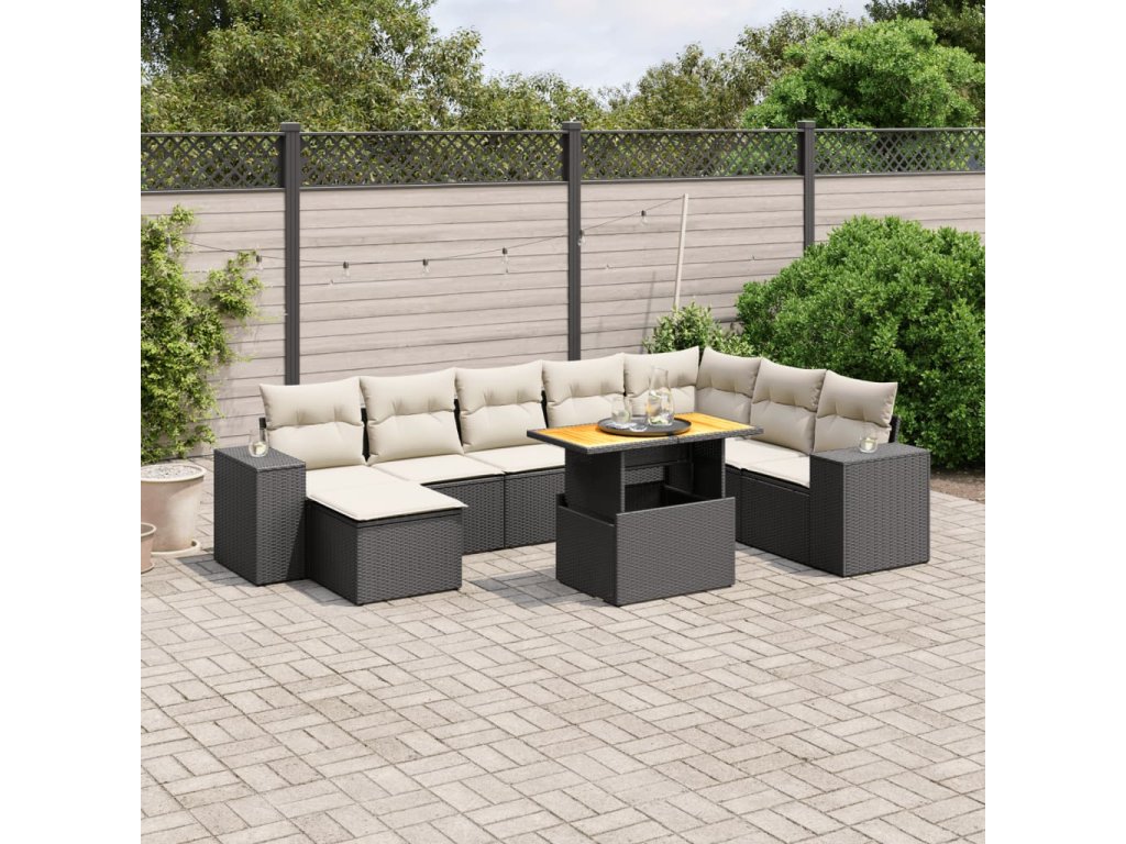 9dílná zahradní sedací souprava s poduškami černá polyratan 3272771