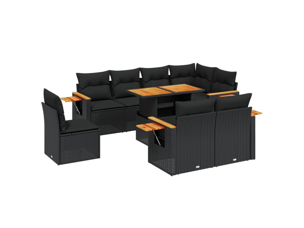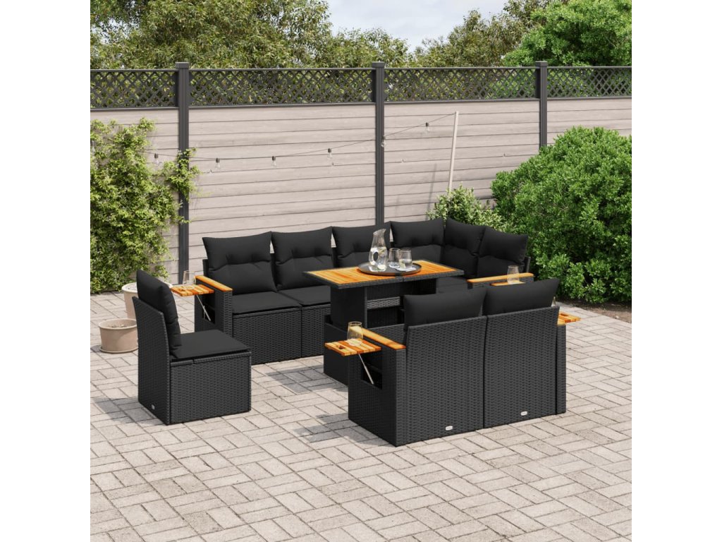 9dílná zahradní sedací souprava s poduškami černá polyratan 3273610