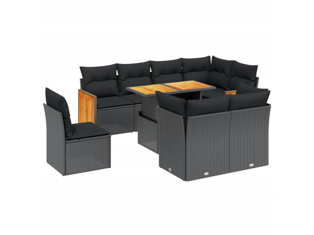 9dílná zahradní sedací souprava s poduškami černá polyratan 3274051