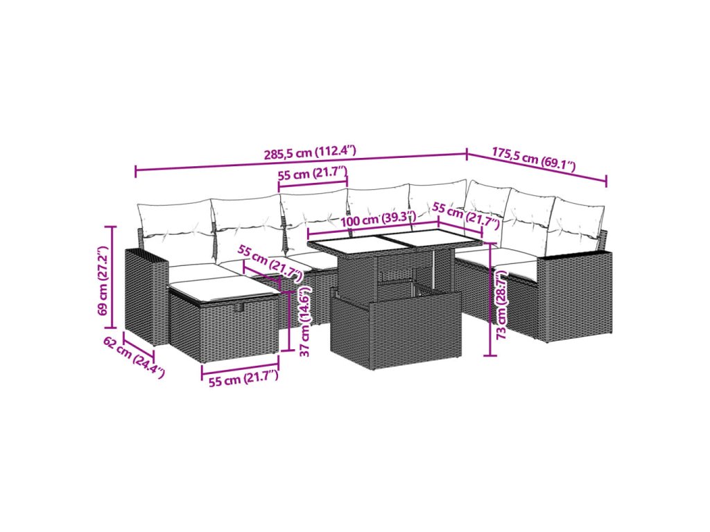 Tato zahradní sedací souprava je dokonalým doplňkem vaší zahrady, terasy nebo dvorku a poskytne vám pohodlné a příjemné místo, kde si můžete povídat s rodinou a přáteli nebo jen tak odpočívat a užívat si pobyt venku.