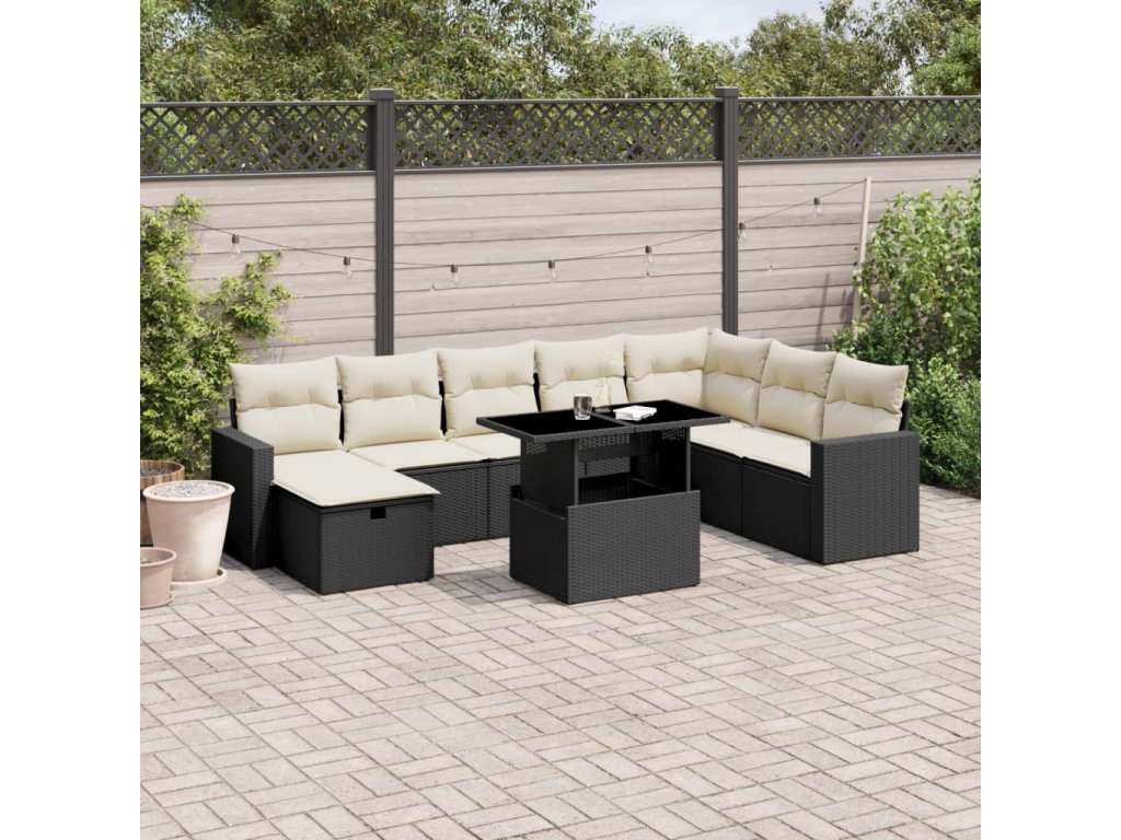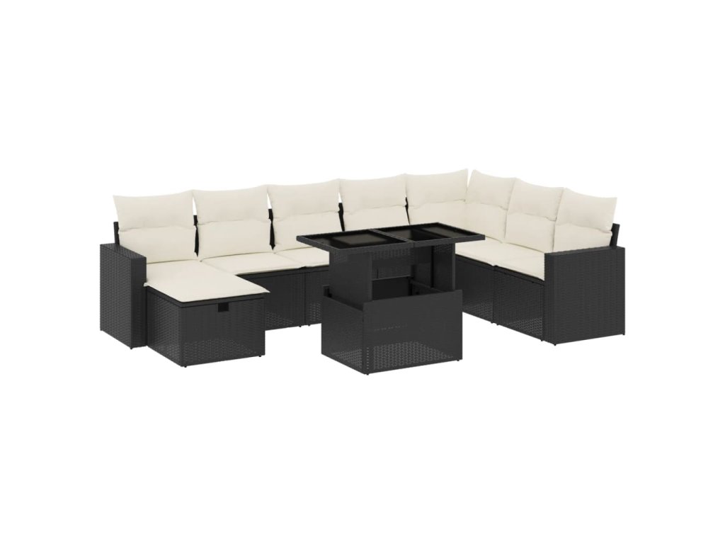 9dílná zahradní sedací souprava s poduškami černá polyratan 3274866