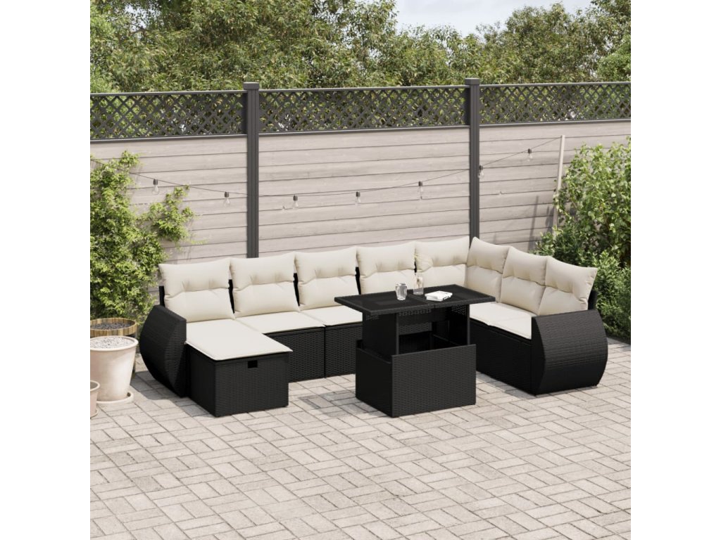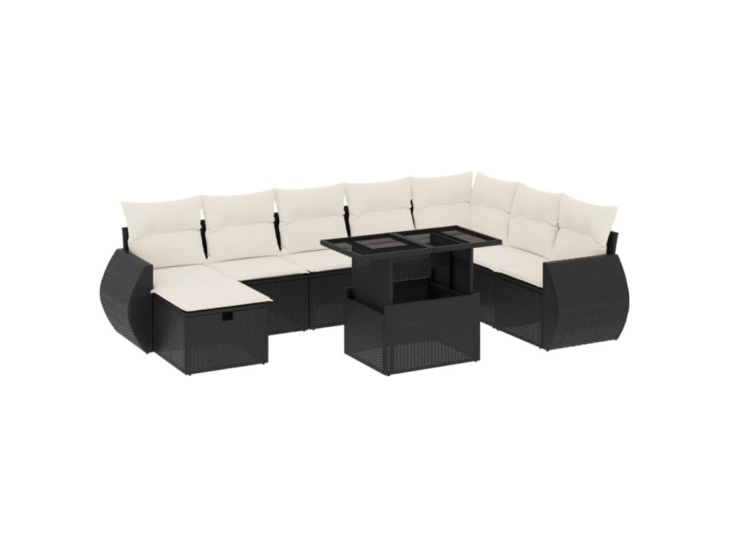9dílná zahradní sedací souprava s poduškami černá polyratan 3275186