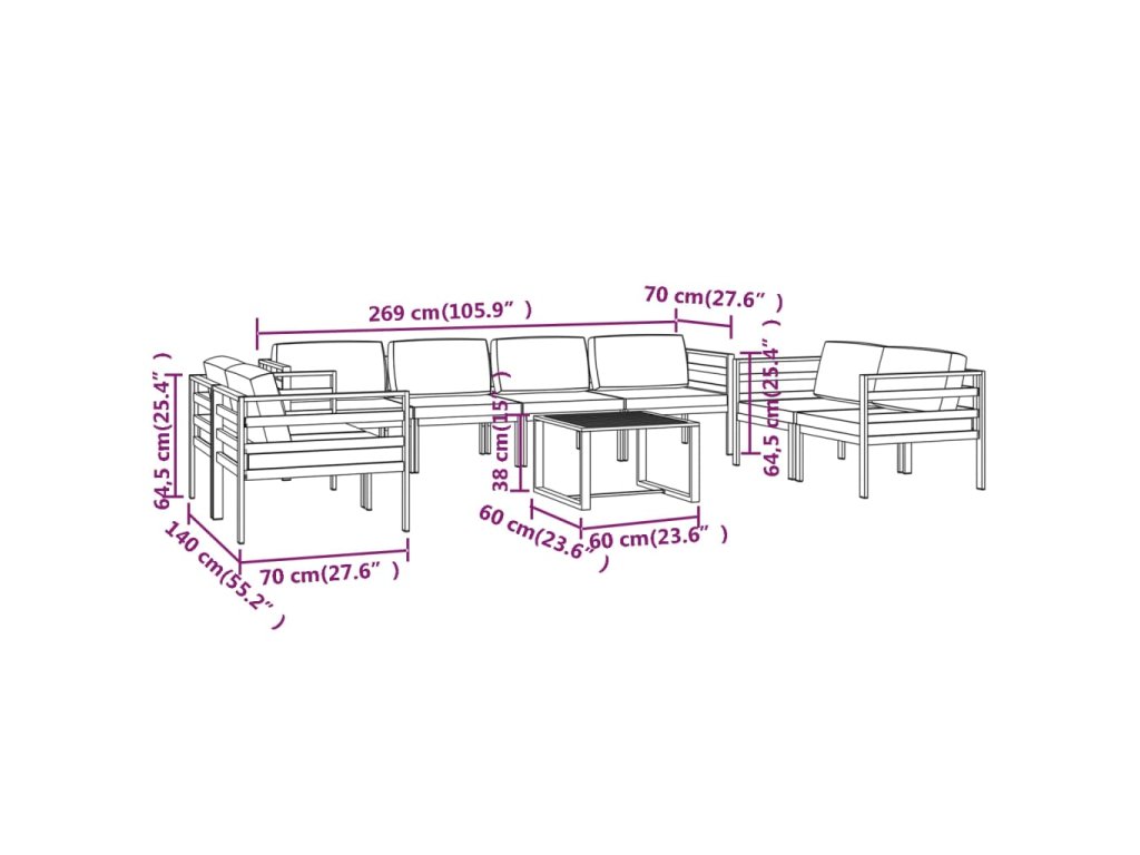 9dílná zahradní sedací souprava s poduškami hliník antracitová 3107799