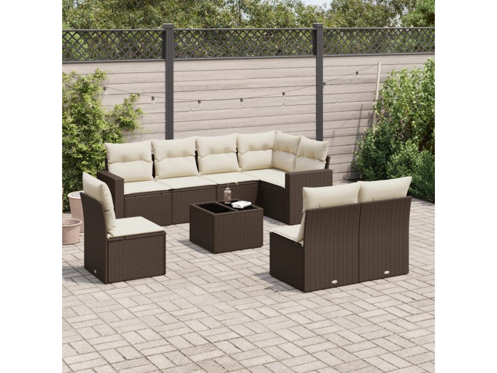 9dílná zahradní sedací souprava s poduškami hnědá polyratan 3219073