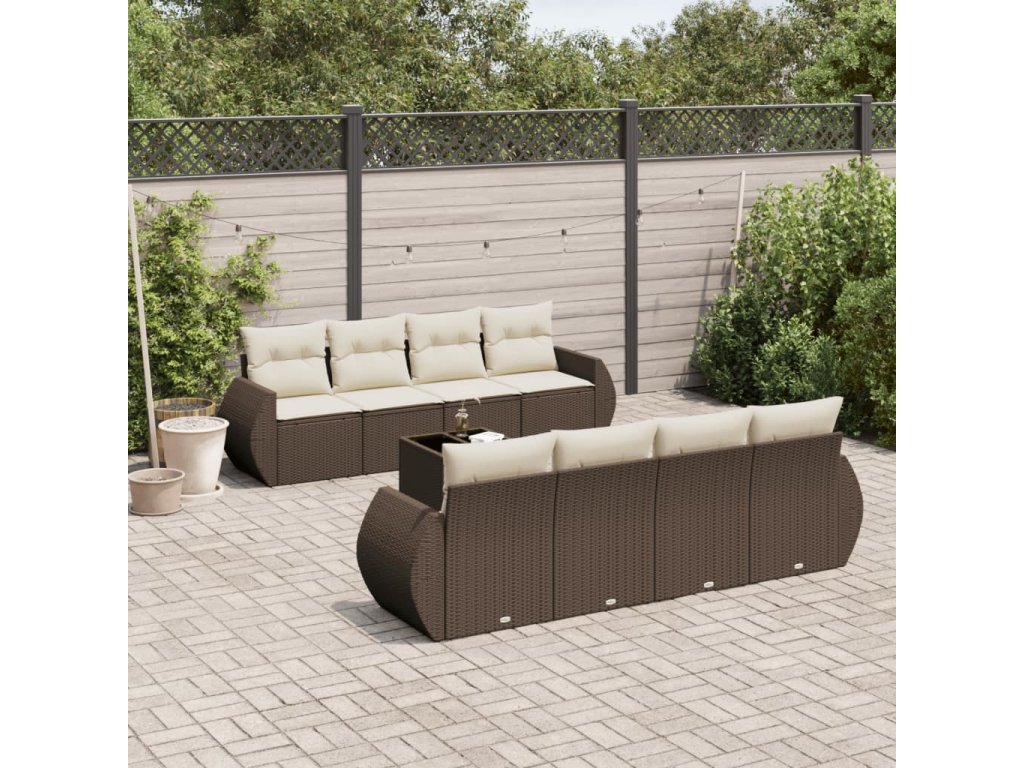 9dílná zahradní sedací souprava s poduškami hnědá polyratan 3221152