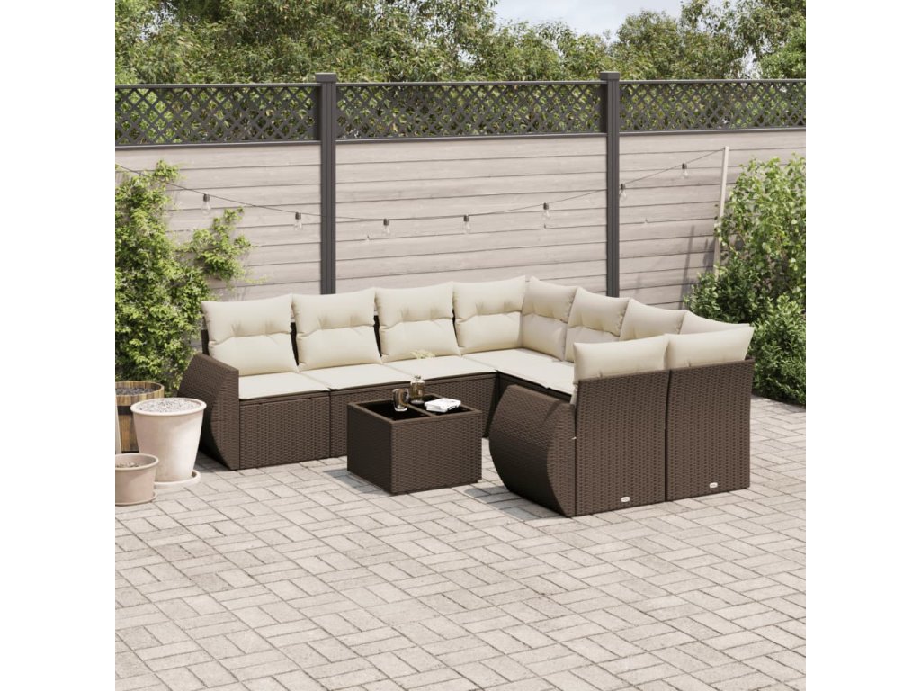 9dílná zahradní sedací souprava s poduškami hnědá polyratan 3221162