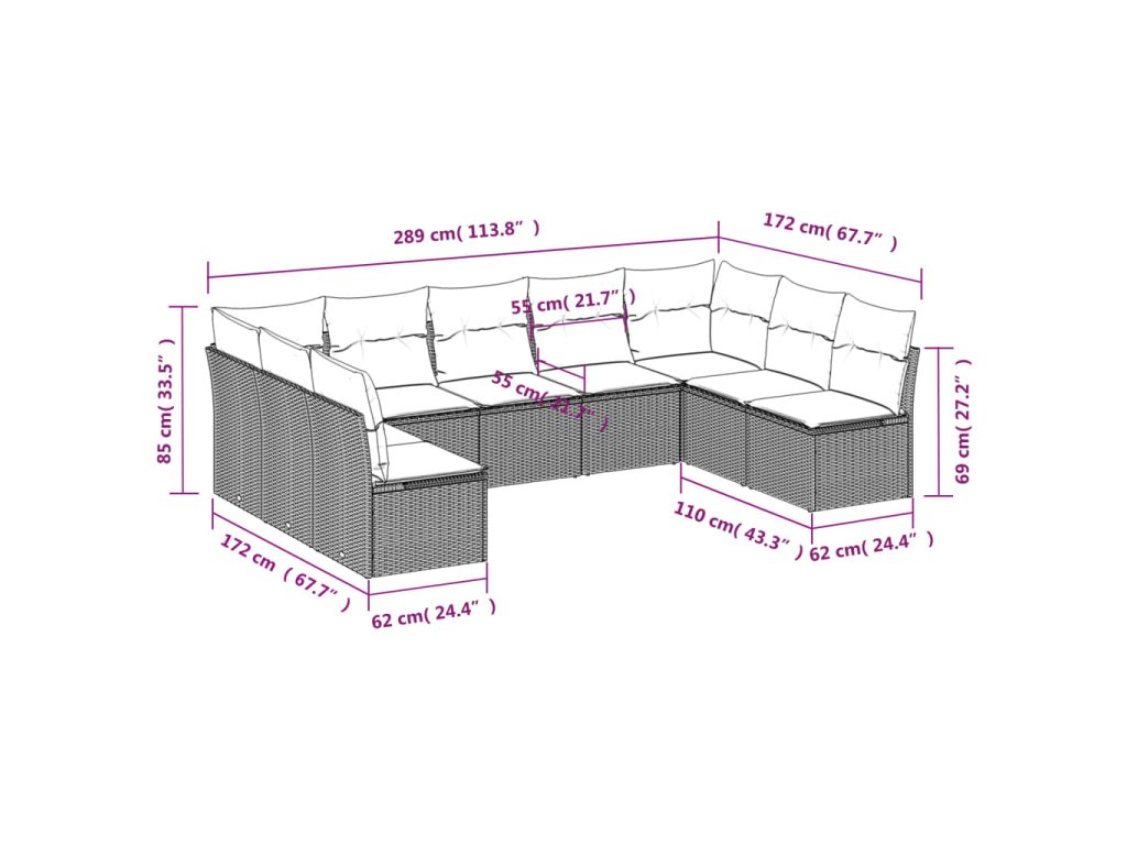 9dílná zahradní sedací souprava s poduškami hnědá polyratan 3249912