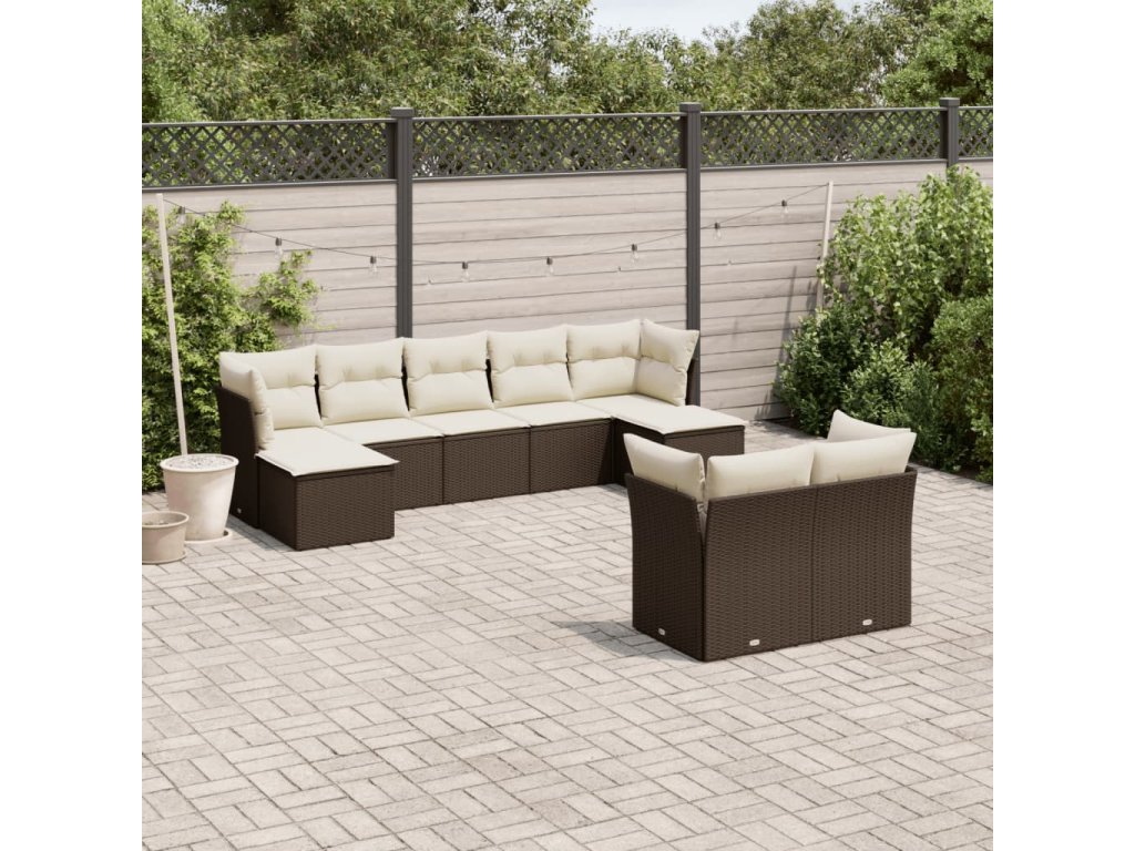 9dílná zahradní sedací souprava s poduškami hnědá polyratan 3250152