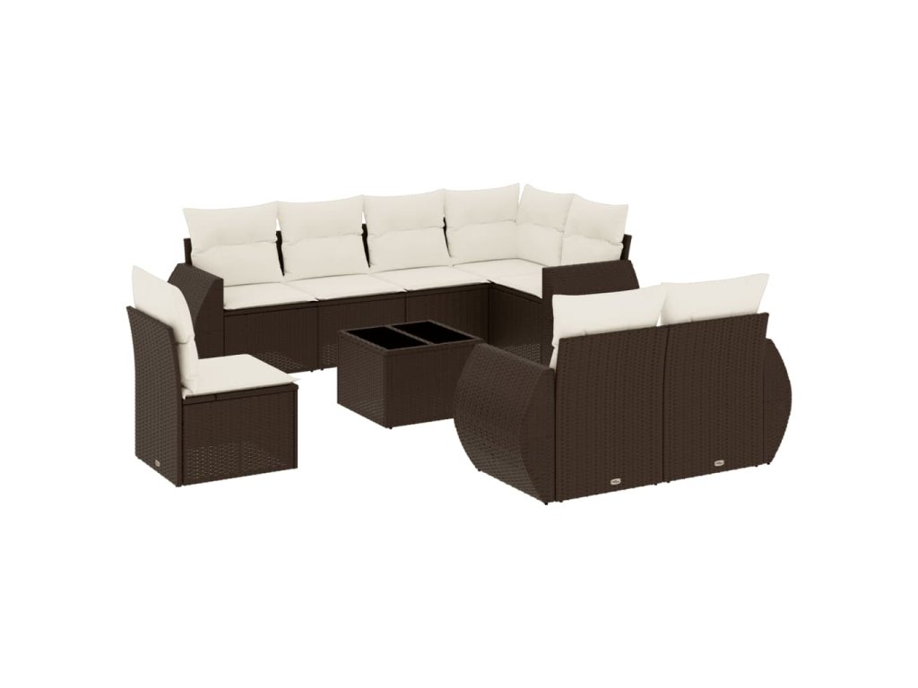 9dílná zahradní sedací souprava s poduškami hnědá polyratan 3253990