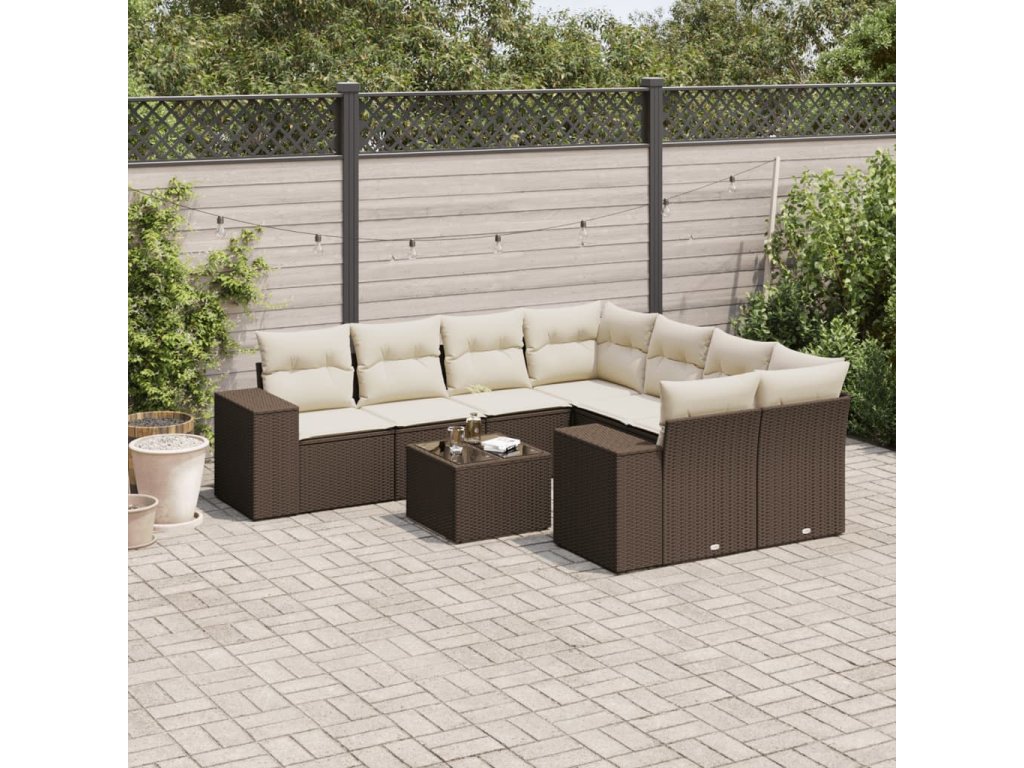 9dílná zahradní sedací souprava s poduškami hnědá polyratan 3254700