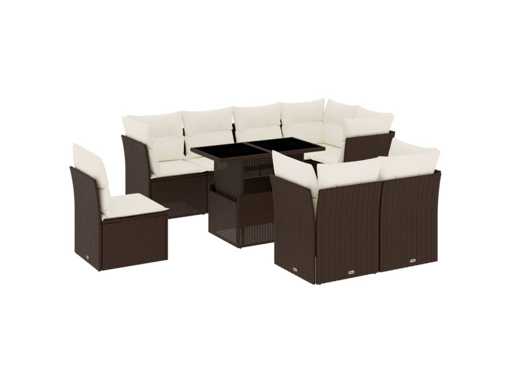 9dílná zahradní sedací souprava s poduškami hnědá polyratan 3266733
