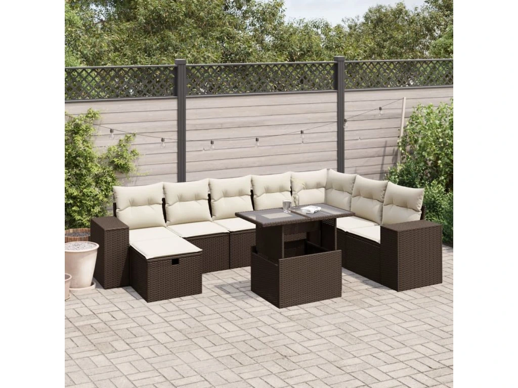 9dílná zahradní sedací souprava s poduškami hnědá polyratan 3275353