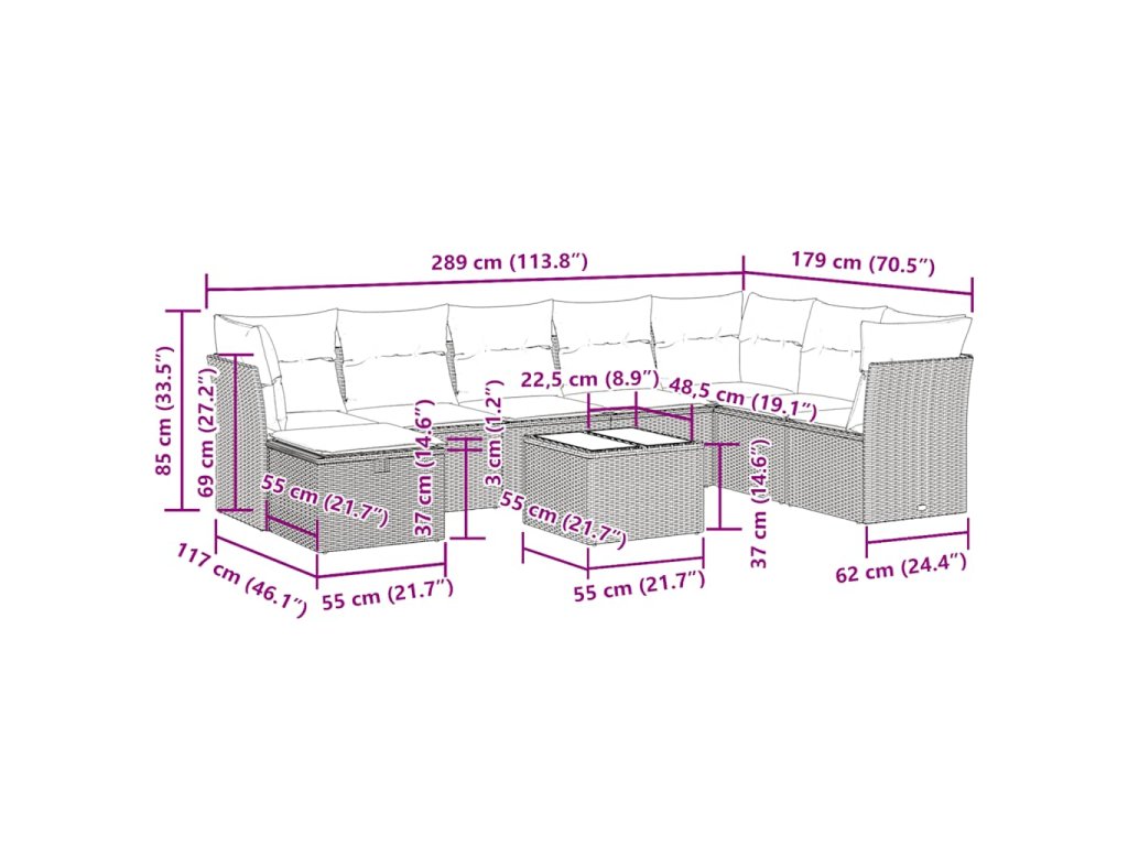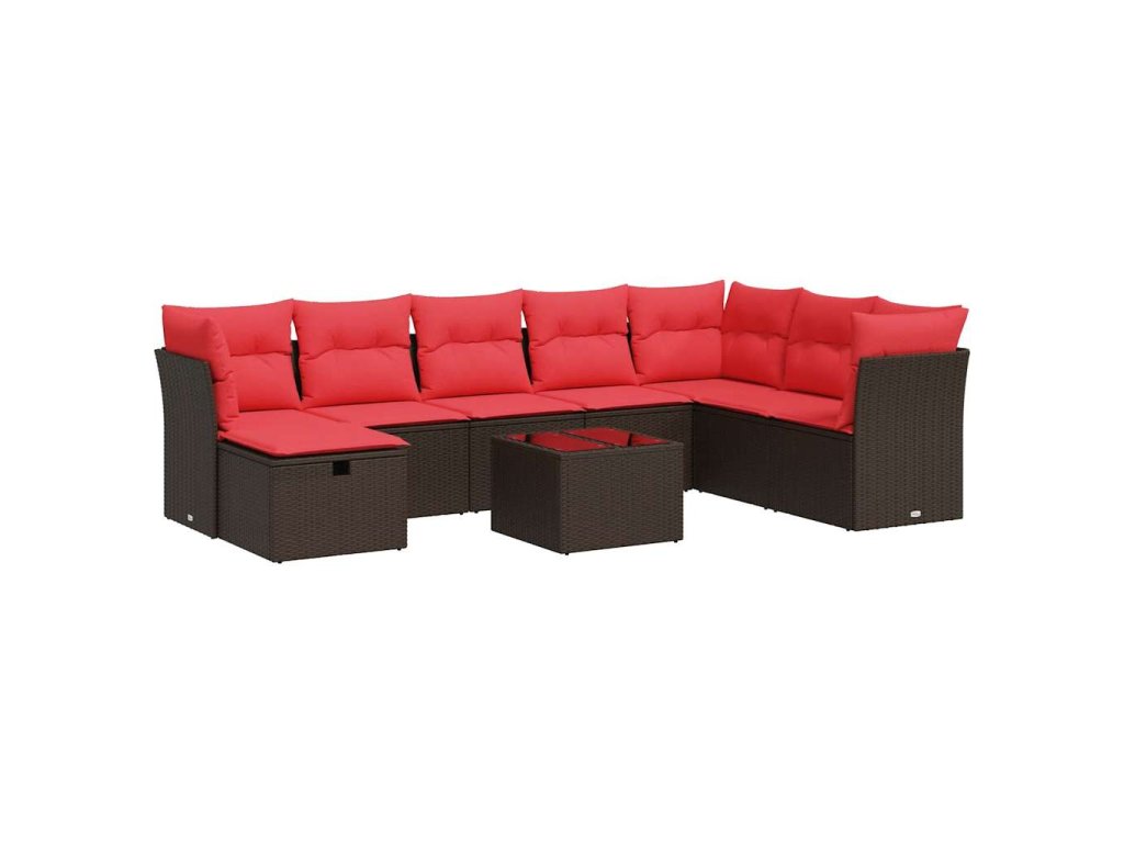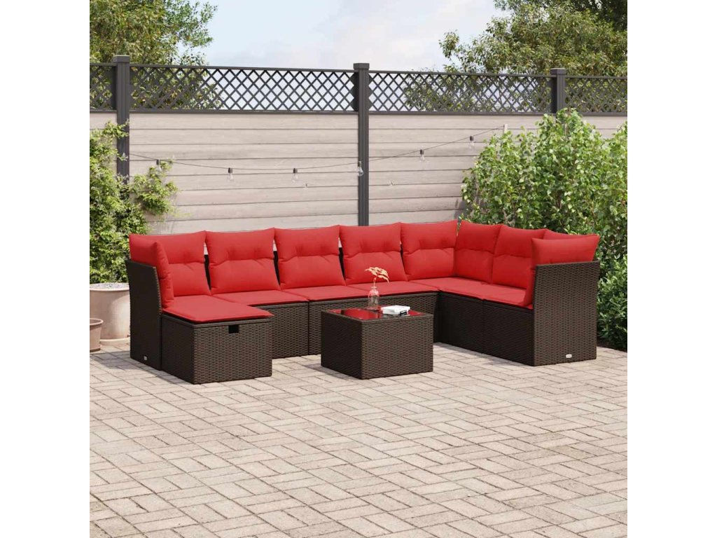 9dílná zahradní sedací souprava s poduškami hnědá polyratan 3325350