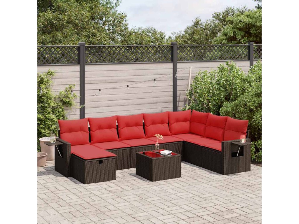 9dílná zahradní sedací souprava s poduškami hnědá polyratan 3325550
