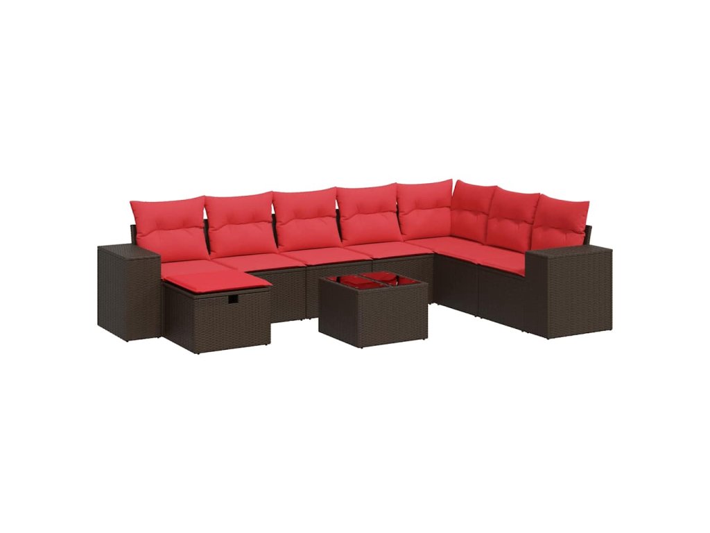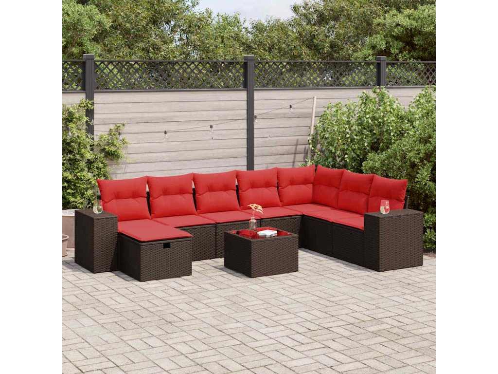 9dílná zahradní sedací souprava s poduškami hnědá polyratan 3325750