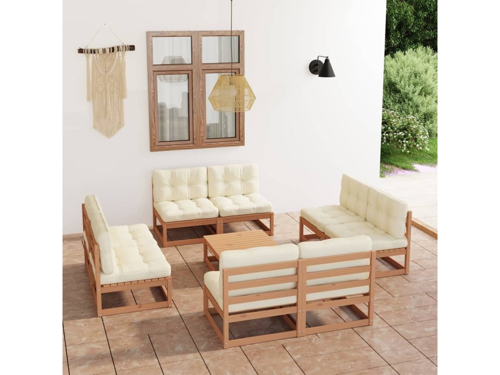 9dílná zahradní sedací souprava s poduškami masivní borovice 3076327