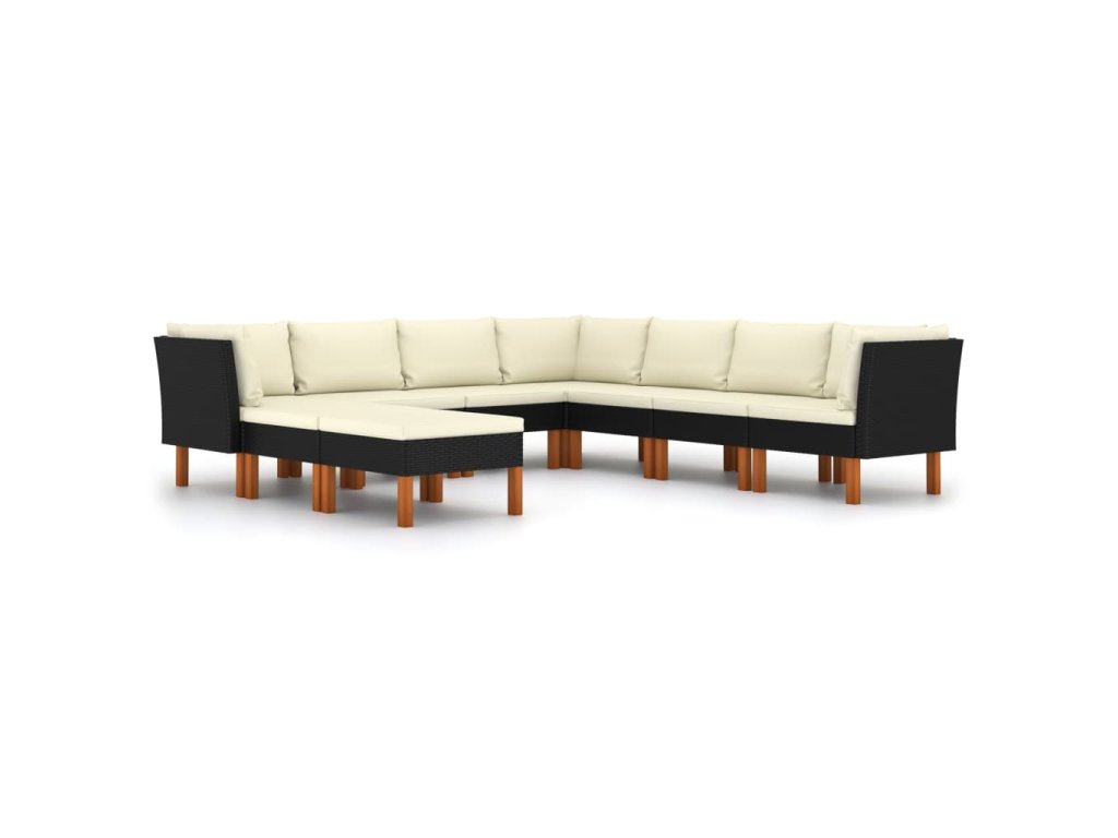 9dílná zahradní sedací souprava s poduškami polyratan černá 3059743