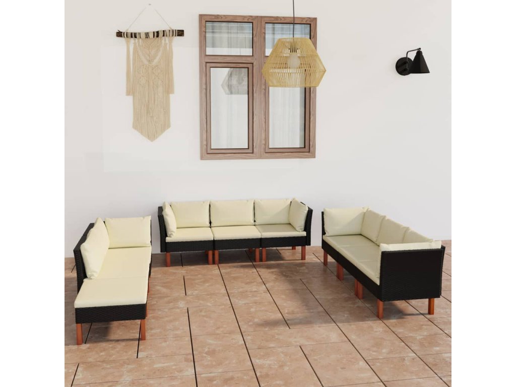 9dílná zahradní sedací souprava s poduškami polyratan černá 3059748