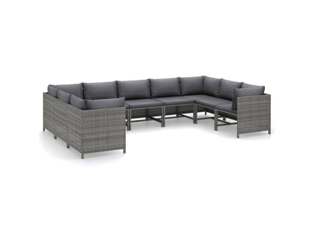 9dílná zahradní sedací souprava s poduškami polyratan šedá 3059767