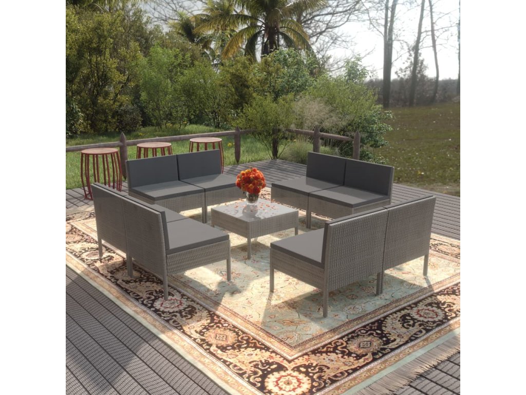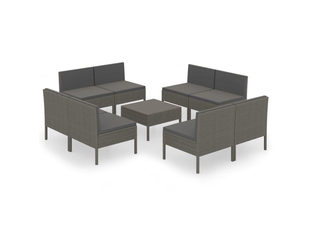 9dílná zahradní sedací souprava s poduškami polyratan šedá 3094318