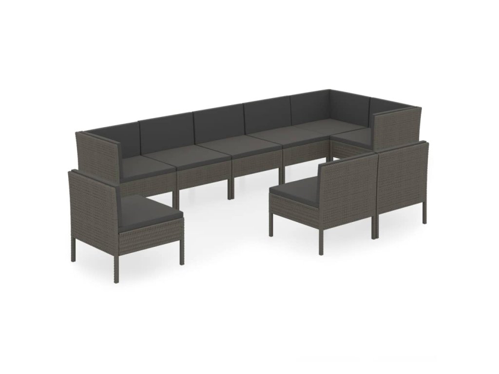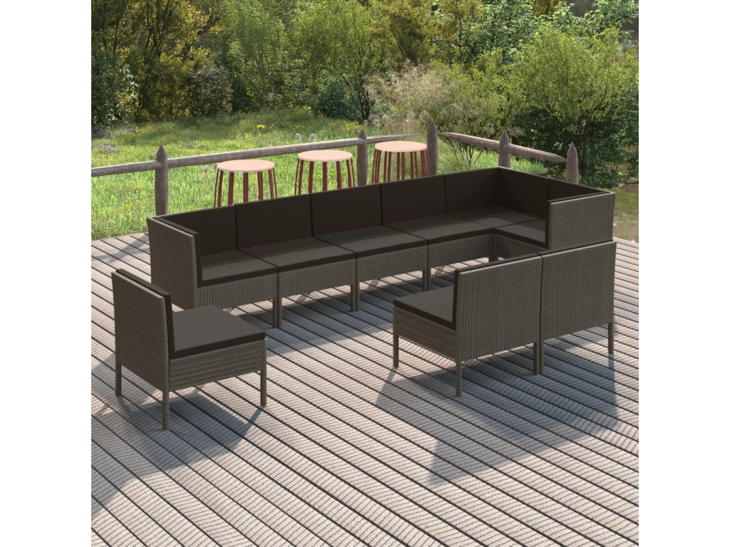 9dílná zahradní sedací souprava s poduškami polyratan šedá 3094406