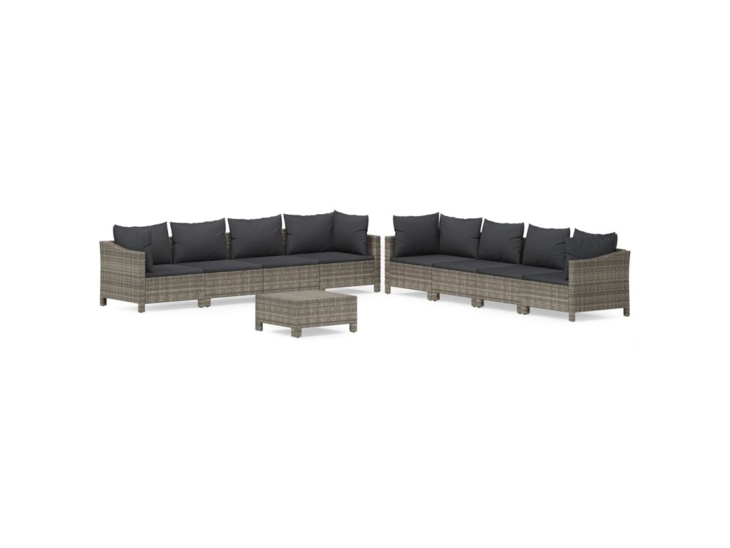 9dílná zahradní sedací souprava s poduškami šedá polyratan 3187268