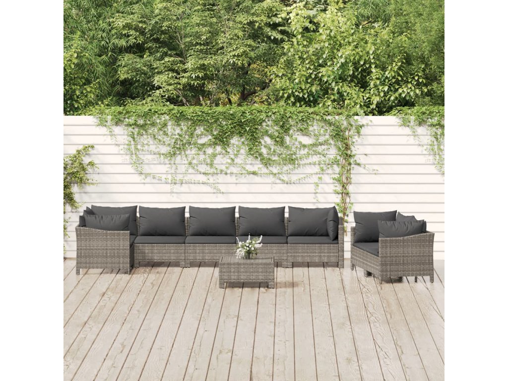 9dílná zahradní sedací souprava s poduškami šedá polyratan 3187290